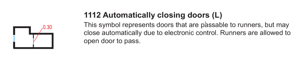 Маємо спеціальний знак для дверей, що автоматично відкриваються. Думаю що в наших умовах ним можна буде позначати будь які двері, якщо їх дозволено відкривати учасникам.