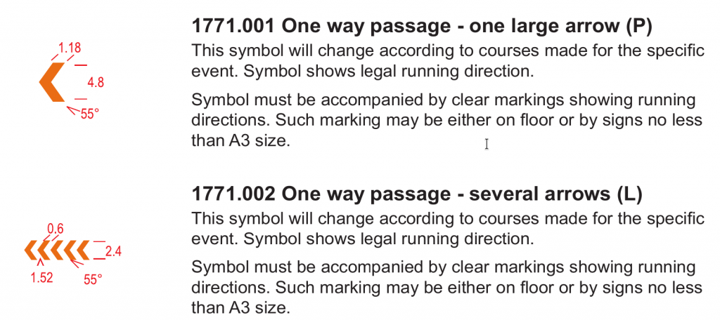 Значно цікавішими є знаки для керування правилами руху учасників, такі як коридори з одностороннім рухом та точки зміни напрямку руху. Вони помітно розширюють можливості планування дистанцій і, на мою думку, мають потенціал також у спринті.